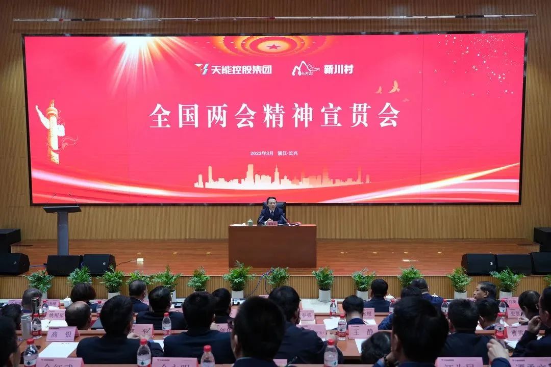 下昼3时,湖州市召开全市向导干部聚会,张天任董事长受邀讲话,转达天下两会精神。