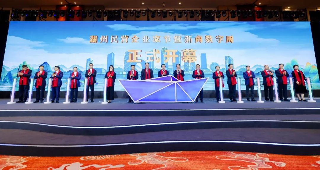 省、市有关向导和张天任董事长 ,以及相关企业家启动2023湖州民营企业家节暨浙商数字周开幕仪式 。