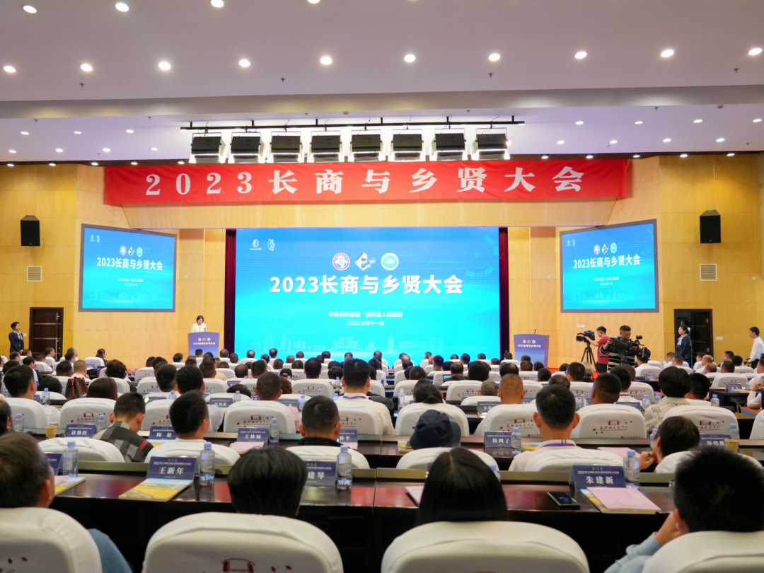 下昼,2023长商与乡贤大会召开,上百位长商与乡贤嘉宾济济一堂,共话长兴生长。